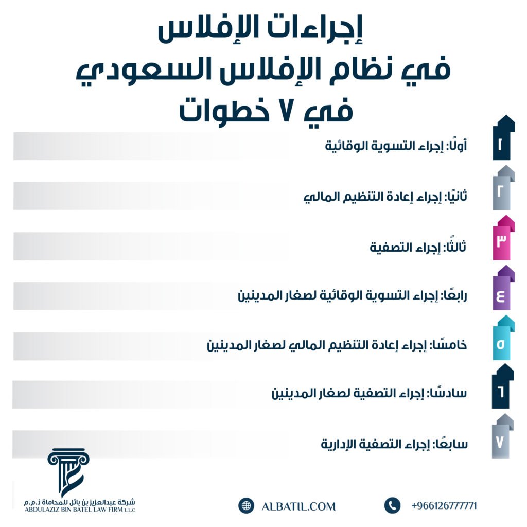 - إشراف لجنة الإفلاس: يتم تنفيذ الإجراء تحت إدارة لجنة الإفلاس لضمان الشفافية والعدالة.