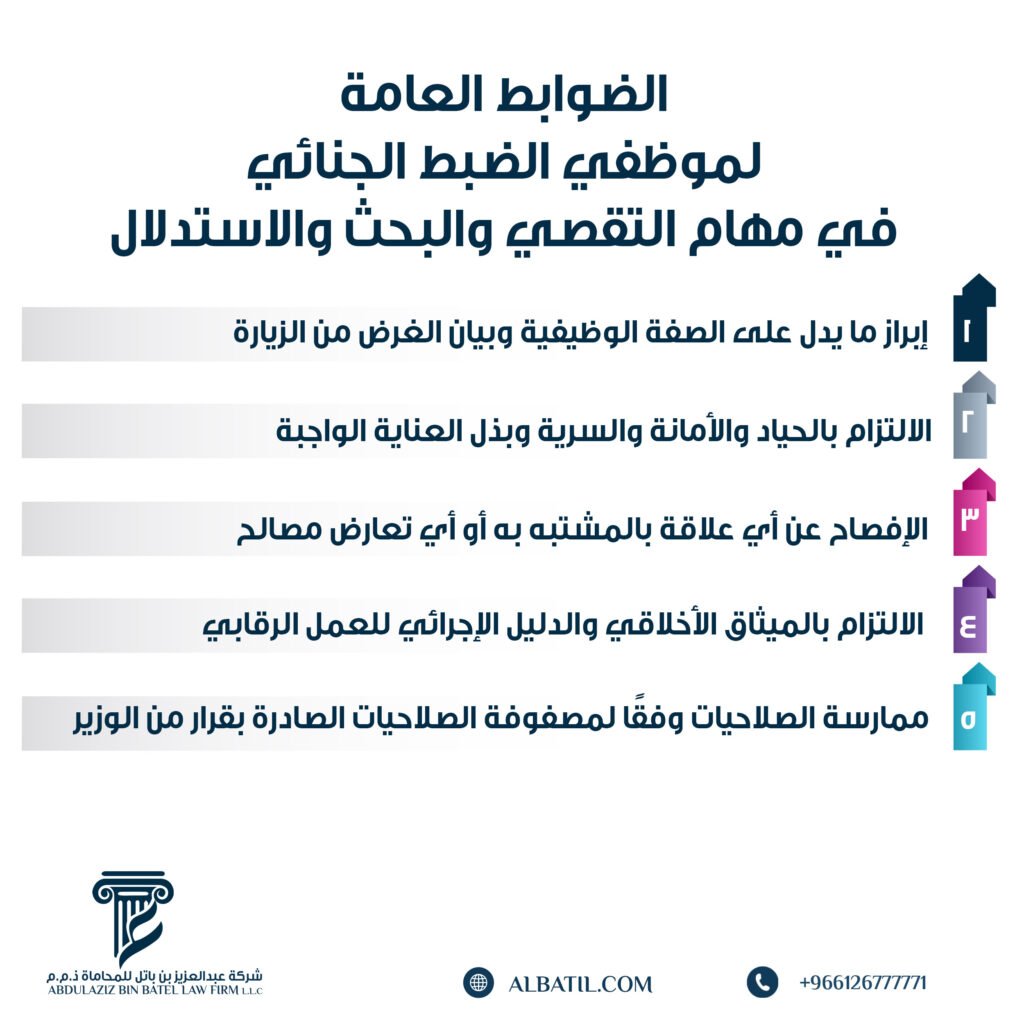 عند أداء مهام التقصي والبحث والاستدلال، يجب أن تقتصر ممارسات موظف الضبط على نطاق الصلاحيات المخولة له بموجب النظام واللائحة التنفيذية، وذلك وفقًا لمصفوفة الصلاحيات المعتمدة بقرار من وزير التجارة. وتحدد هذه المصفوفة الحدود القانونية والإجرائية التي لا يجوز تجاوزها، مما يضمن تنفيذ الإجراءات ضمن الإطار التشريعي المنظم لعمل الجهات الرقابية.